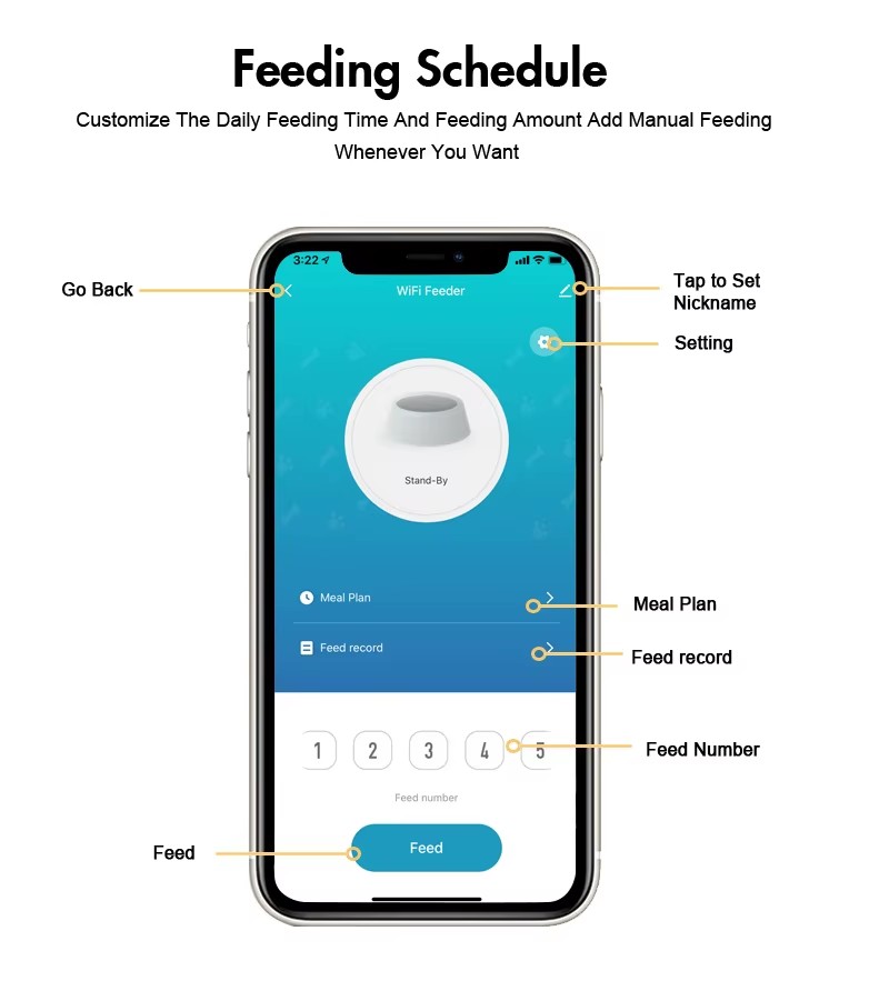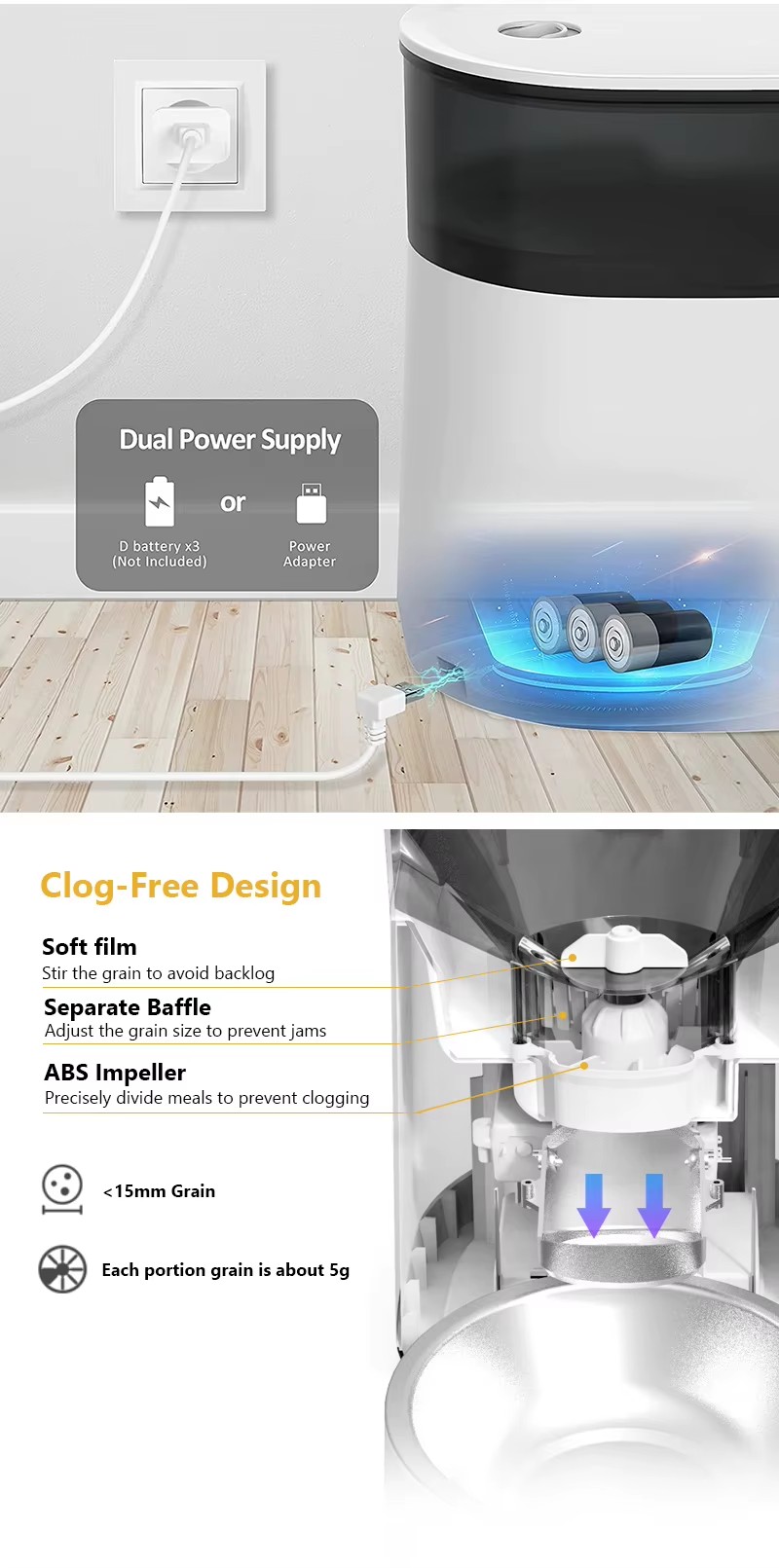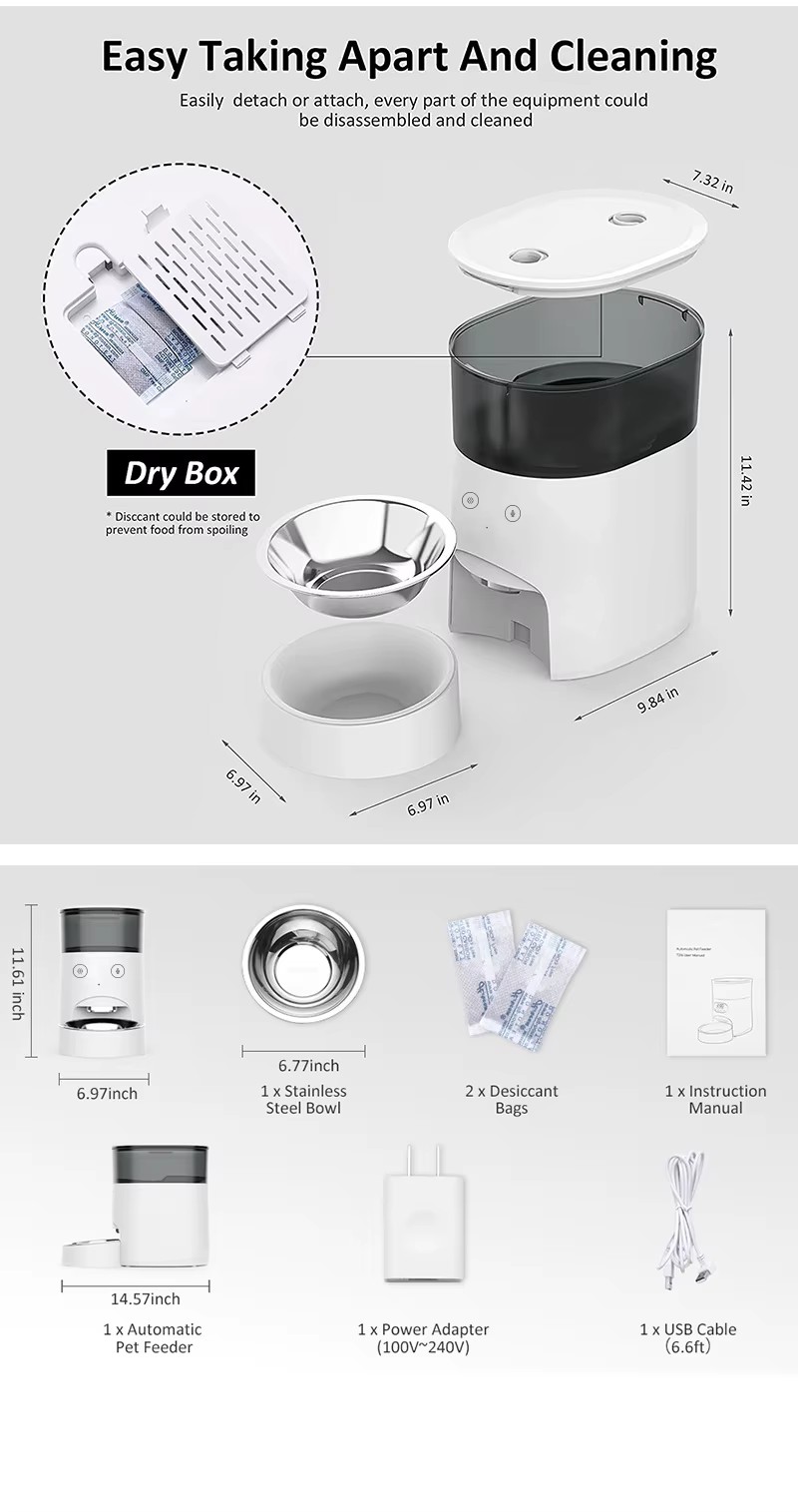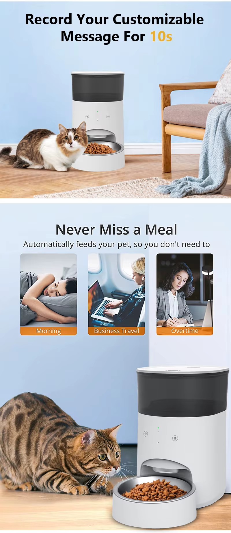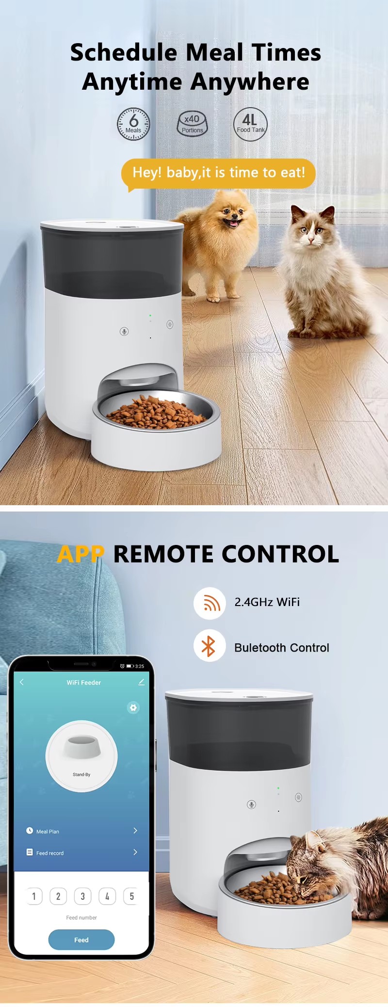 4L Mobile App Control Pet Feeder, 10 Seconds Voice Record, Customized Feeding Schedule, Dual Power Supply